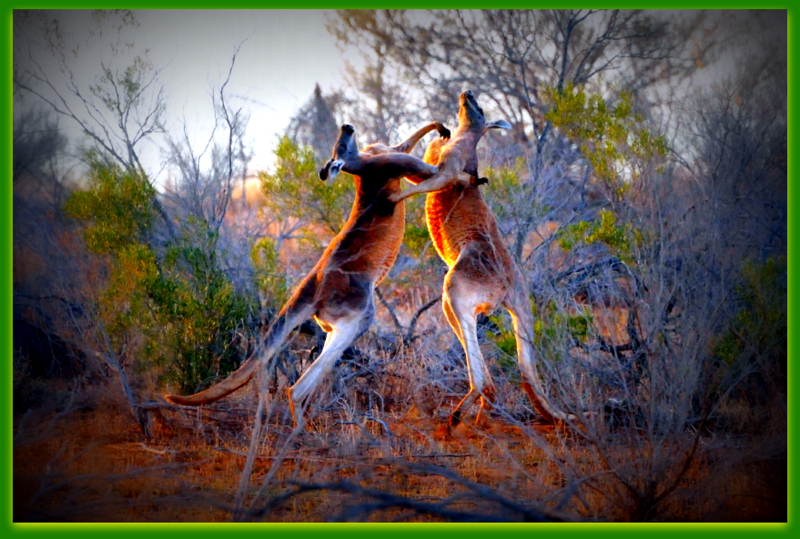 The Moon remains in Cancer, but it’s heading towards the New Moon (more on that tomorrow) at 12:24 AM EDT Thursday. The Jupiter/Pluto aspect early in the day sets the theme: we may feel we’re on shifting ground and can’t quite get our footing. We may be stymied by larger forces that influence huge numbers of people or land in the middle of other people’s wacky power plays. It doesn’t help that we can wake up a little befuddled (dream leftovers?) due to a jarring Moon/Neptune aspect early in the AM. Around lunch time (Noon through 1:00 – 2:00 PM EDT) is a good time to get together with friends, take a break, and enjoy friendly conversations. After that, the Moon/Saturn square may set off a round of reactive/insecure behavior, as people feel somehow exposed or let down. This evening (9:55 PM EDT), Mars is at it again (remember yesterday?), this time exactly opposing Uranus, a volatile combination that can spark odd, restless, contrarian, or violent behavior. Slow down, take care, pay attention to warnings and road signs if driving and remain alert. It’s not a good day to take unnecessary chances (I’d avoid mountain climbing, hang-gliding and/or drag racing today.) Mars/Uranus is banging down the gate, but the Sun/Moon in Cancer combo isn’t thrilled about its fortress being besieged, so the energies are clashing today and everyone’s a little stressed out. Something feels ‘off’, the energy is herky-jerky. It reminds me of kangaroos fighting, hence today’s image at the top of the blog! World events may reflect this dynamic today–people may be rebellious, but the Powers That Be aren’t necessarily in the mood to compromise. This is the kind of day that’s so charged we may feel worn out when we finally retire for the evening.