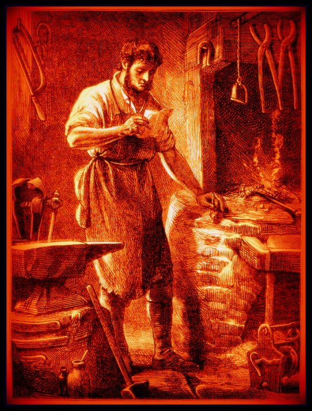 The Kozminsky Symbol is right on target with today’s aspects. This image is meant to show someone who awakens others as he strikes a blow against the forces of materialism to bring them the light. It’s a Prometheus image, one who brings fire to humanity. It represents the spark that survives the densest matter, and tells us that we often develop our greatest strength under pressure. This is a clear representation of today’s Sun/Saturn in Scorpio aspect. The blacksmith also relates to Pluto (or Vulcan), lord of the underworld, who is sometimes represented as a blacksmiith. Pluto, as ruler of Scorpio, is the planet of transformation and removal of impurities. Here we’re forged in the fire and return in another form (one of the Pluto/Scorpio symbols is the Phoenix, a reincarnatory bird of fire and light). This Symbol urges us to hone ourselves into instruments of light and crawl out of the darkness of karmic traps, fears and restrictions. It requires dedication, discipline and hard work (Saturn), but will illuminate and reveal our essence (Sun) if we are brave enough to persist.