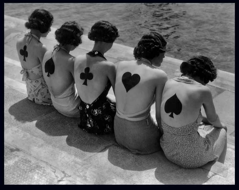 The Sabian Symbol also evokes the past. (I’m visualizing old photos of women in what were once daring bathing costumes lined up at Atlantic City for a beauty pageant.) This Symbol relates to displays of charm and grace, putting yourself in front of the public, being judged by external appearances, being “on parade”, and taking the initiative. It tells us to take advantage of our assets, to make the best use of whatever endowments we possess. We’re “in the swim” now, the focus of attention. Maybe we’ll win a prize–fortune smiles on us.