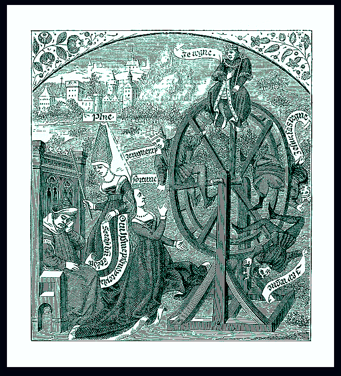 The Kozminsky Symbol is connected to Mars (soldiers/aggressive acts), and here we see the urge for power running out of control. The old (they’ve been doing this for a long time) soldiers abduct struggling women, which reminds me of the Tarot Strength where we wrestle with powerful urges in order to achieve self-mastery and keep all parts of ourselves in balance. The keyword is “indulgence”, but this kind of indulgence isn’t the simple pleasure shown in today’s Sabian Symbol. Kozminsky says “He must strive lest he become the slave of his lower self and the inducer of his own dangers.” It’s related to ancient, destructive patterns that evolve (or devolve!) into repeated themes in our lives. How does the “barbarian” show its face in your life? What is your shadow up to? What patterns would you like to change?