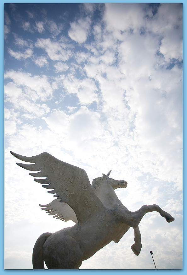 Kozminsky Symbol for today’s SUN: “ A winged horse flying over a fortress.” (Influence is: JUPITER.)
